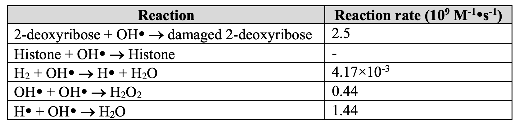 the early indirect DNA damage which is generated in a few nanoseconds after physical stage. In chemical stage, only the reactions between hydroxyl radicals